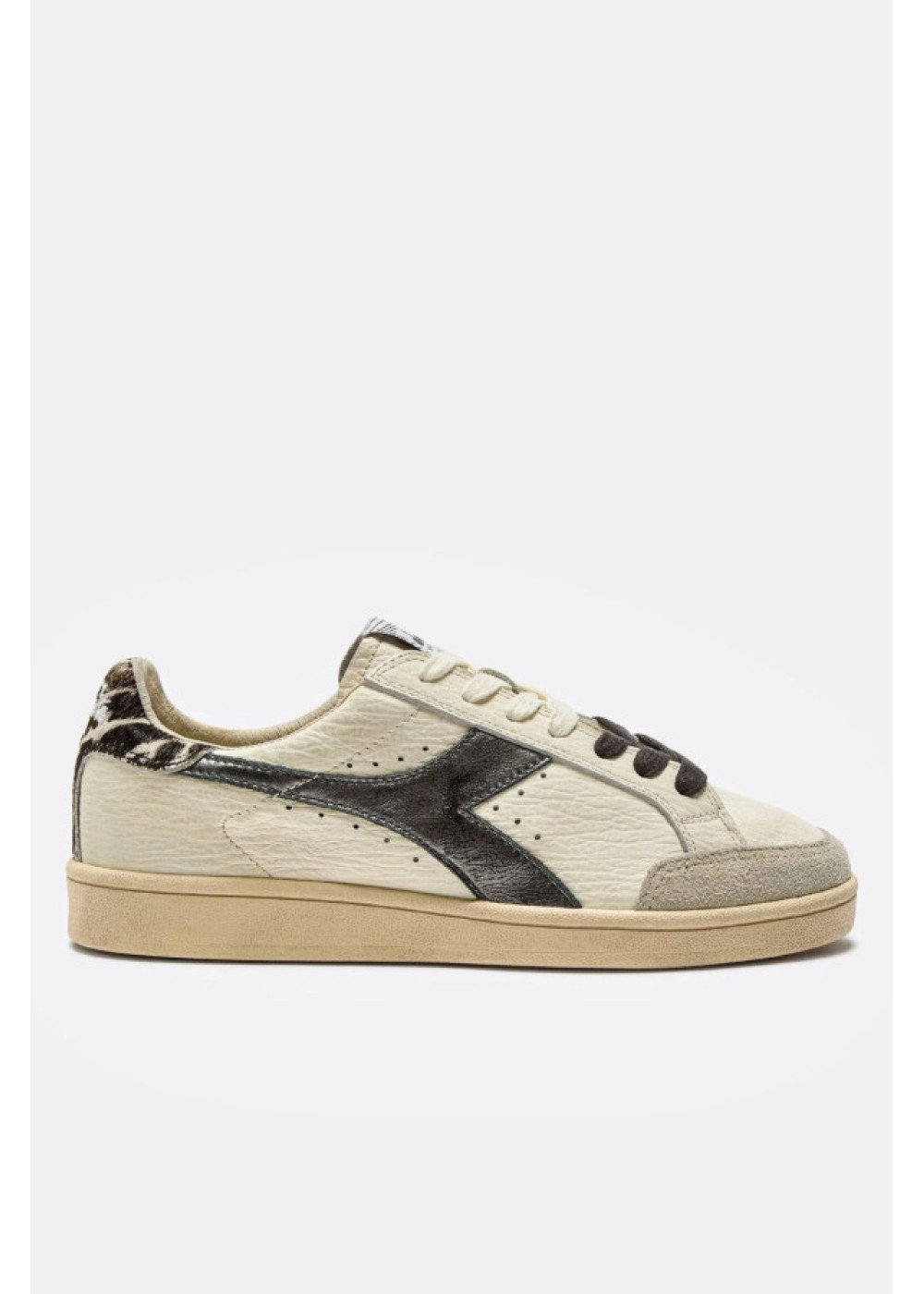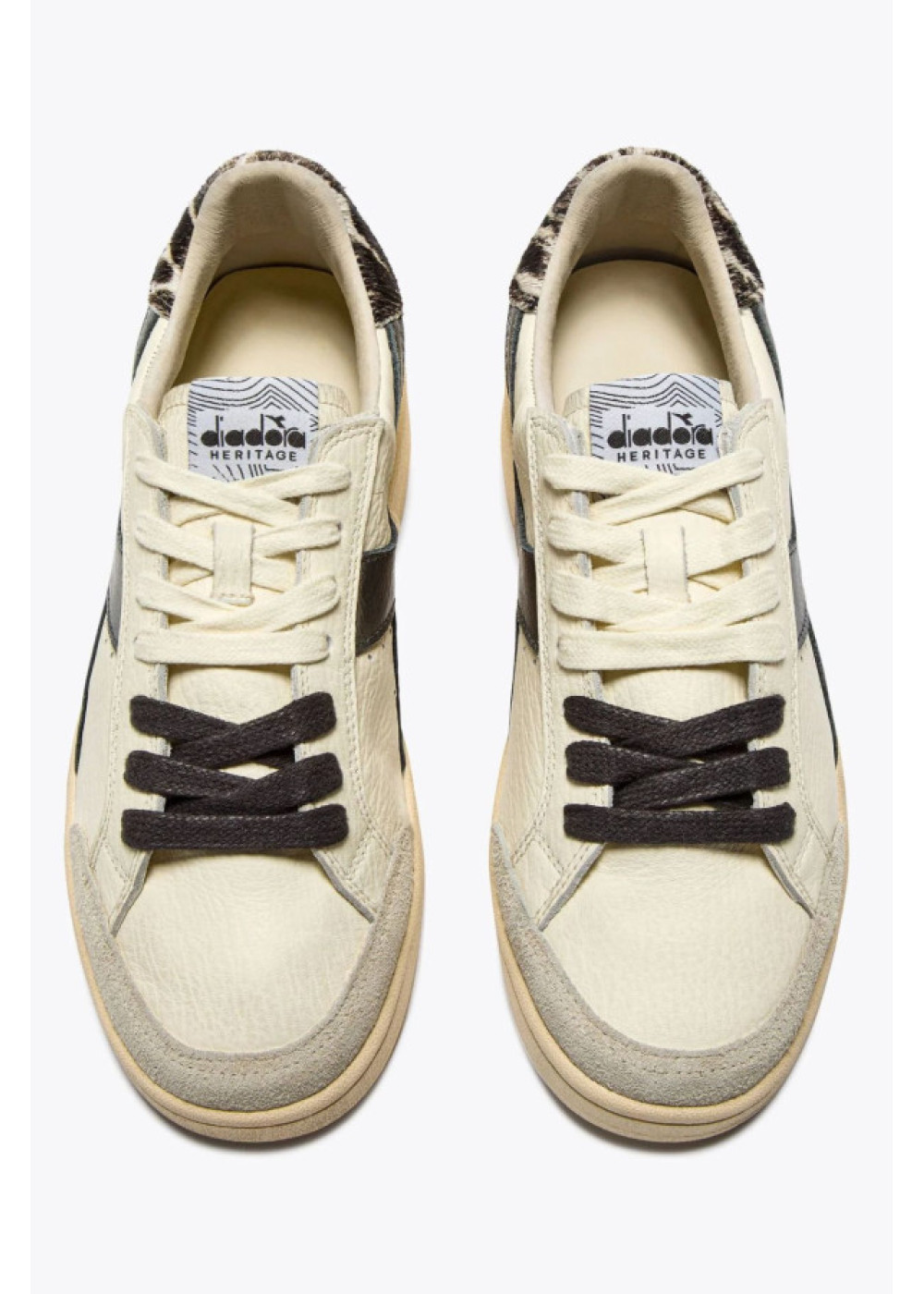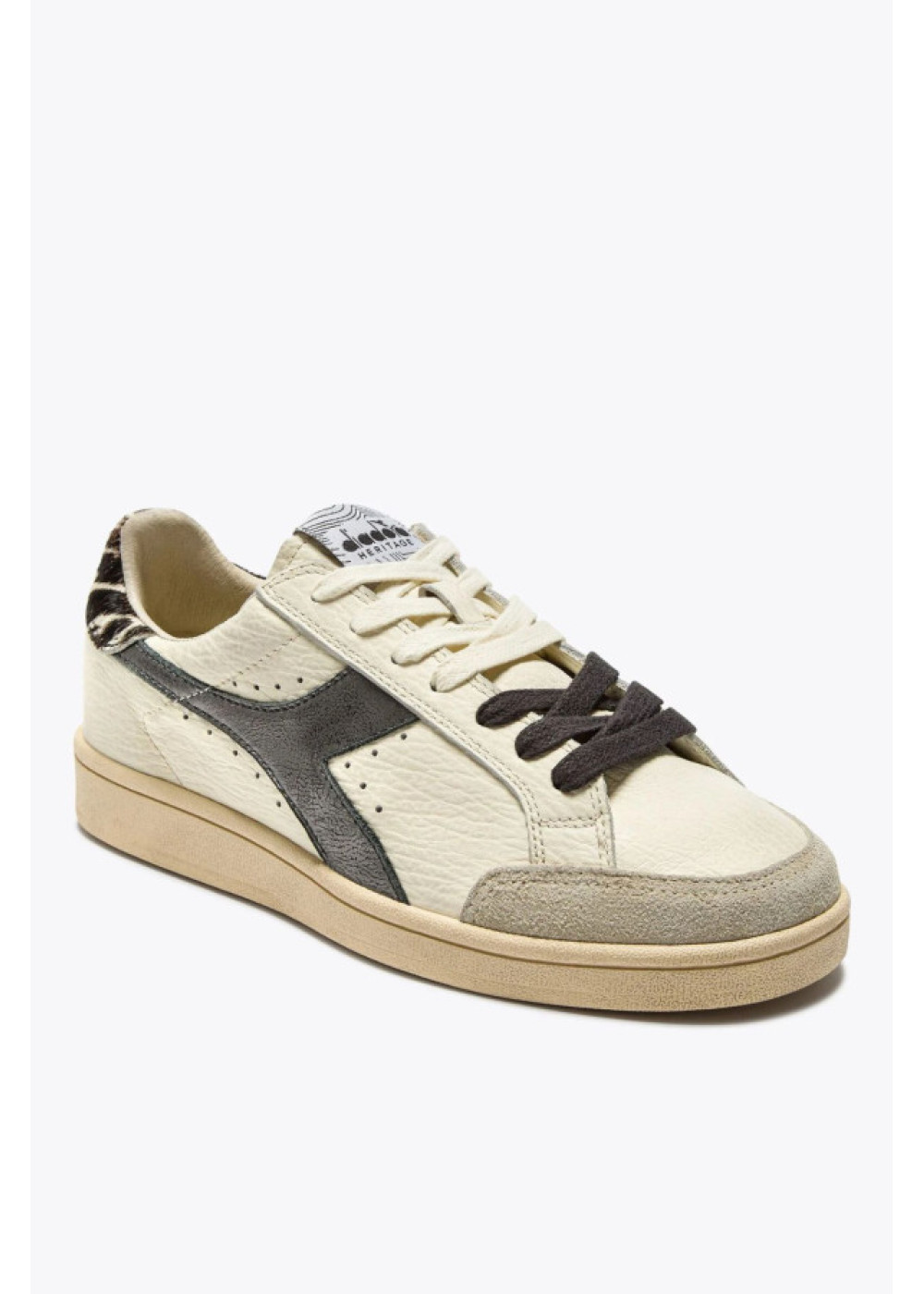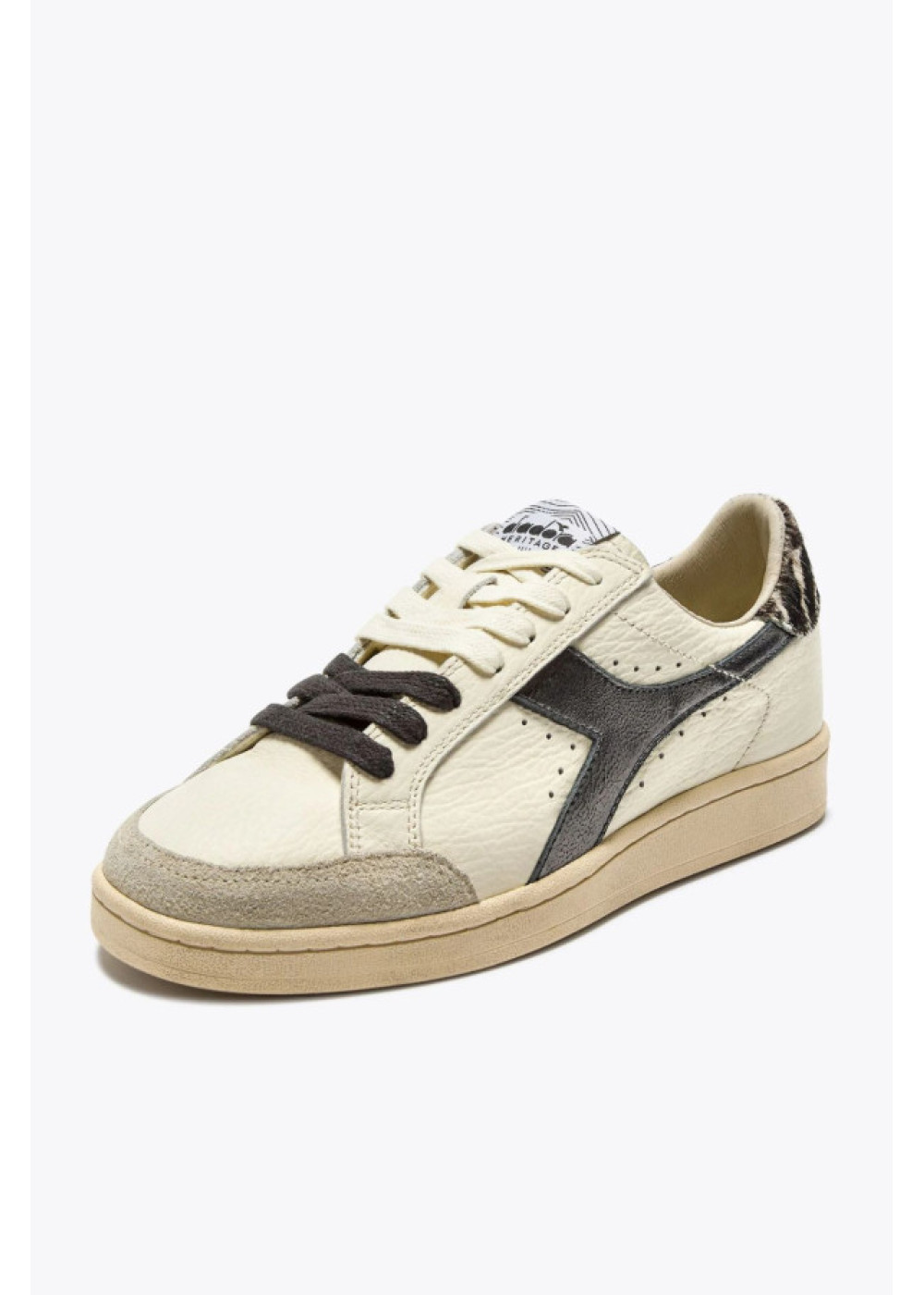 Prestige Safari presenta una lengüeta trasera con detalles de estampado animal en piel hoursy, el contraste perfecto con el fregio de efecto laminado. Un ligero encerado confiere ese inconfundible aspecto desgastado, un estilo exclusivo de las zapatillas Heritage.