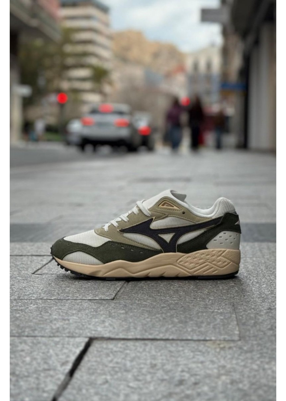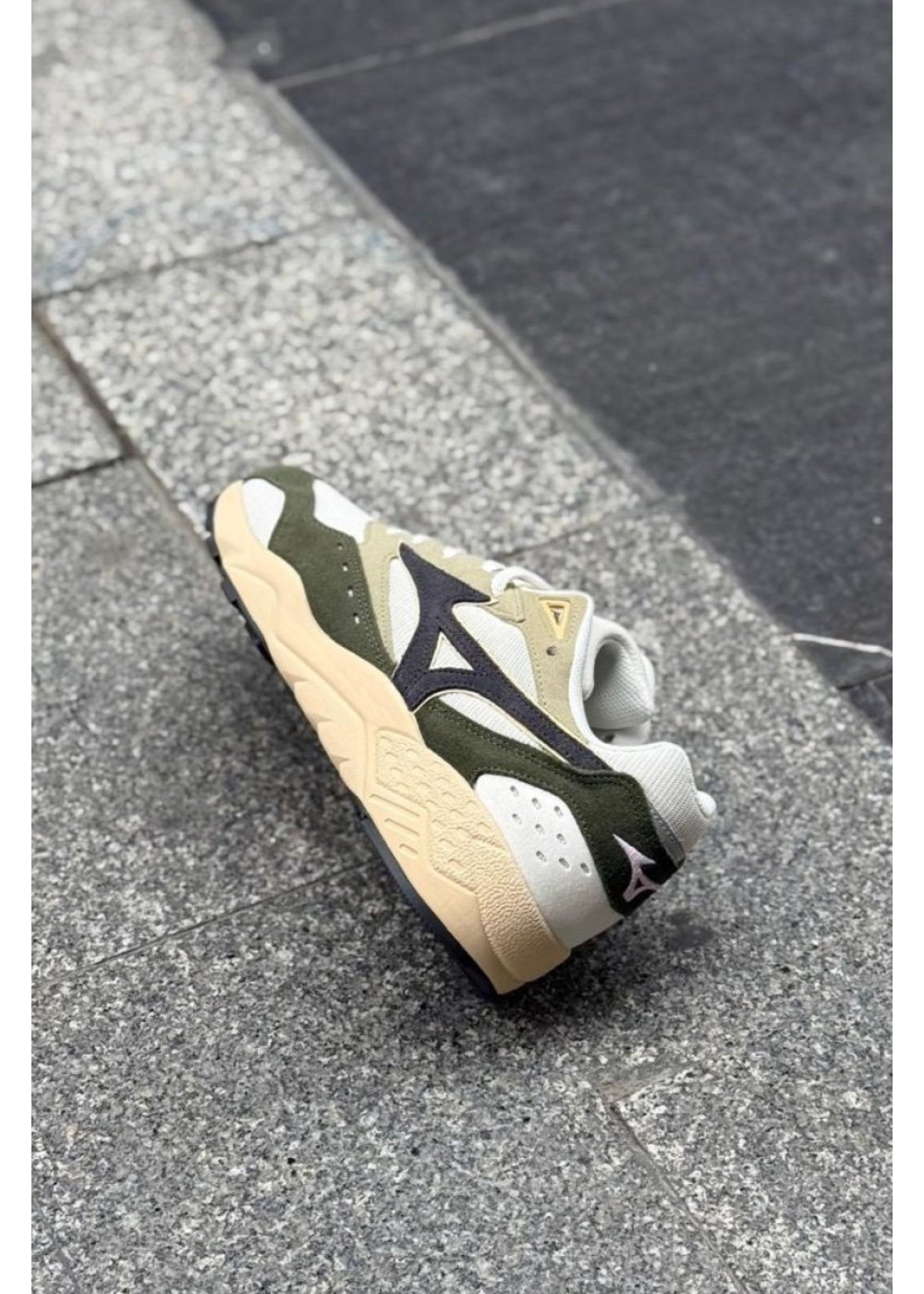 El aspecto clásico de los años 90 y la forma equilibrada en la que se alternan la malla mate y el ante crean una mezcla única entre una sensación casual y los orígenes deportivos de esta silueta.