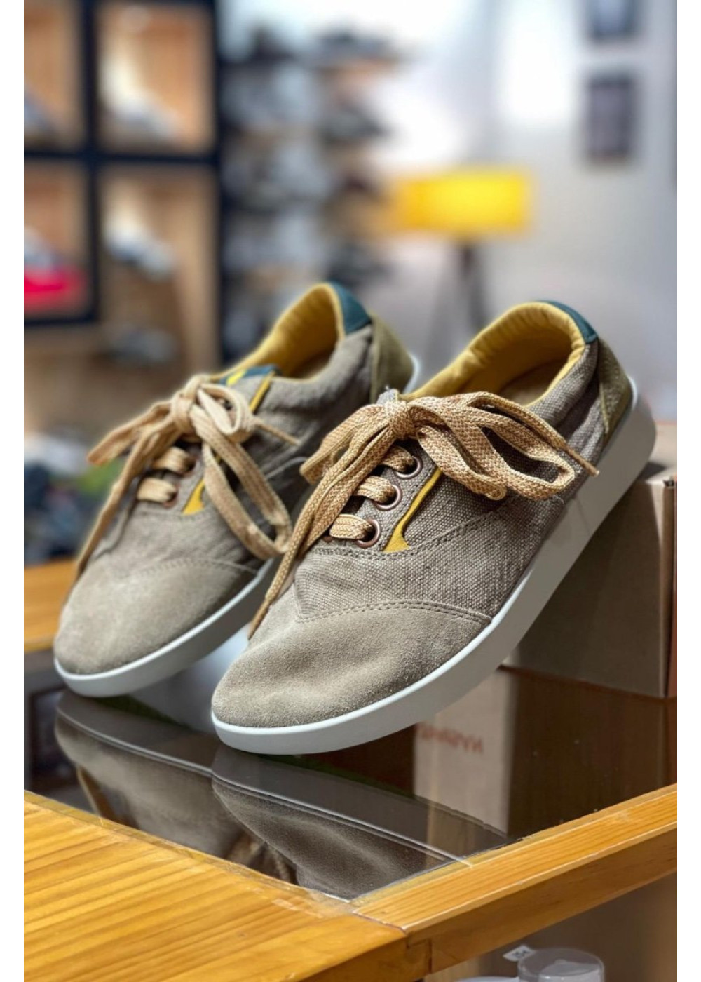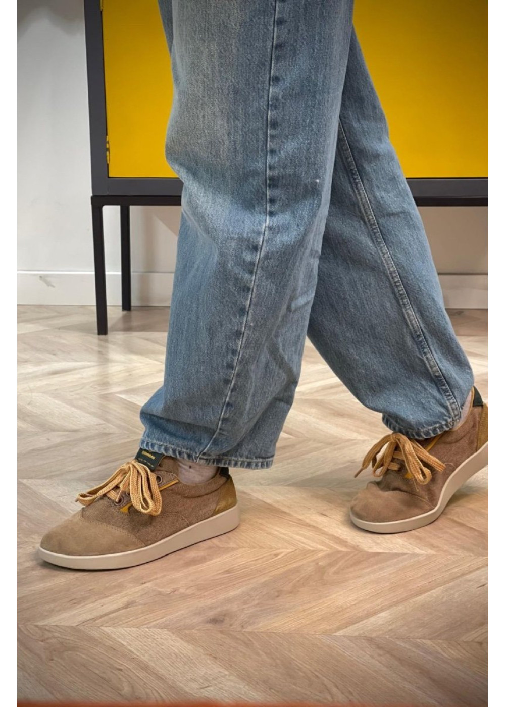 Fabricado con una combinación de lino/algodón y ante, esta zapatilla es fresca y extremadamente suave.
