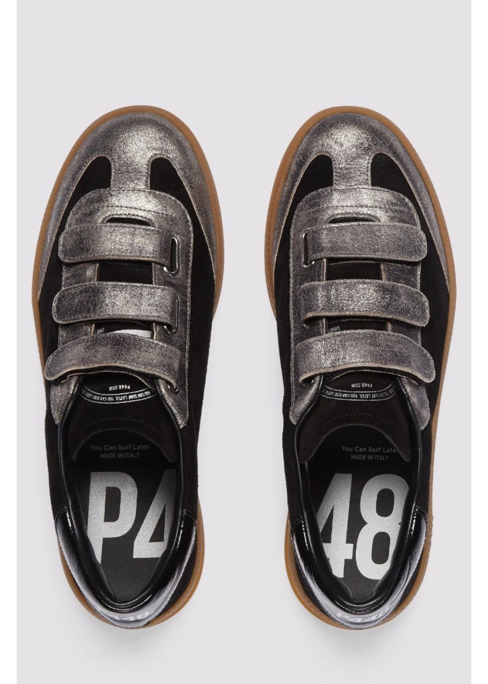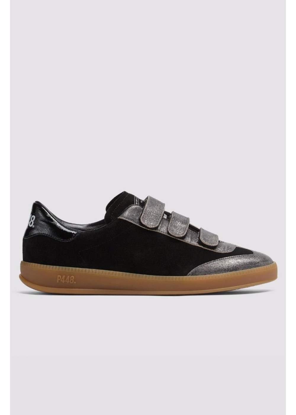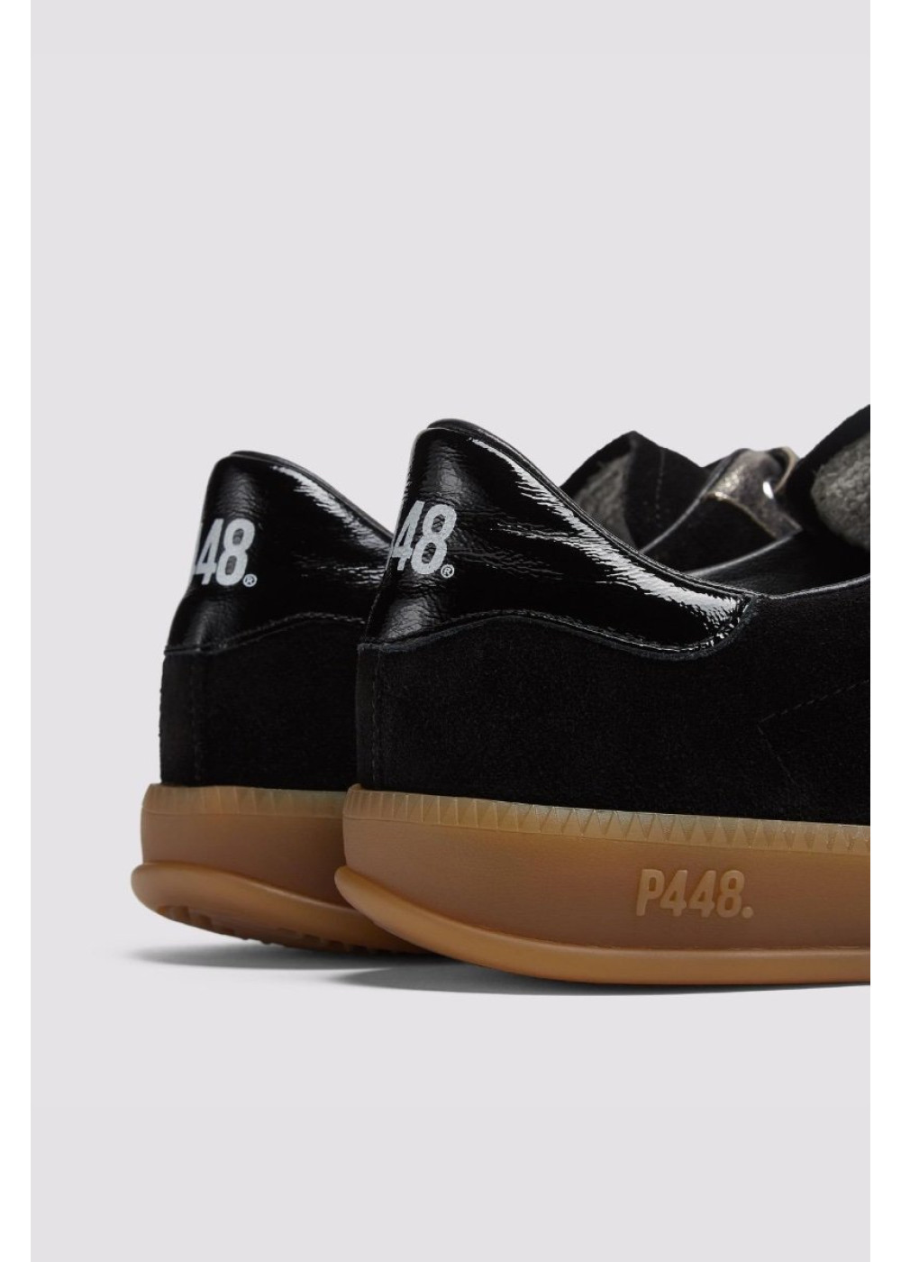 La P448 Capri Black es una silueta que captura la esencia de las botas de fútbol clásicas y la eleva al lujo contemporáneo. Fabricada íntegramente en Italia, esta zapatilla destaca por su construcción envolvente en ante negro y su diseño minimalista pero lleno de matices técnicos.