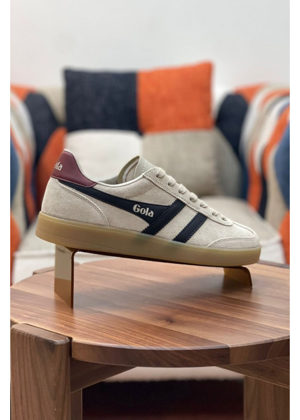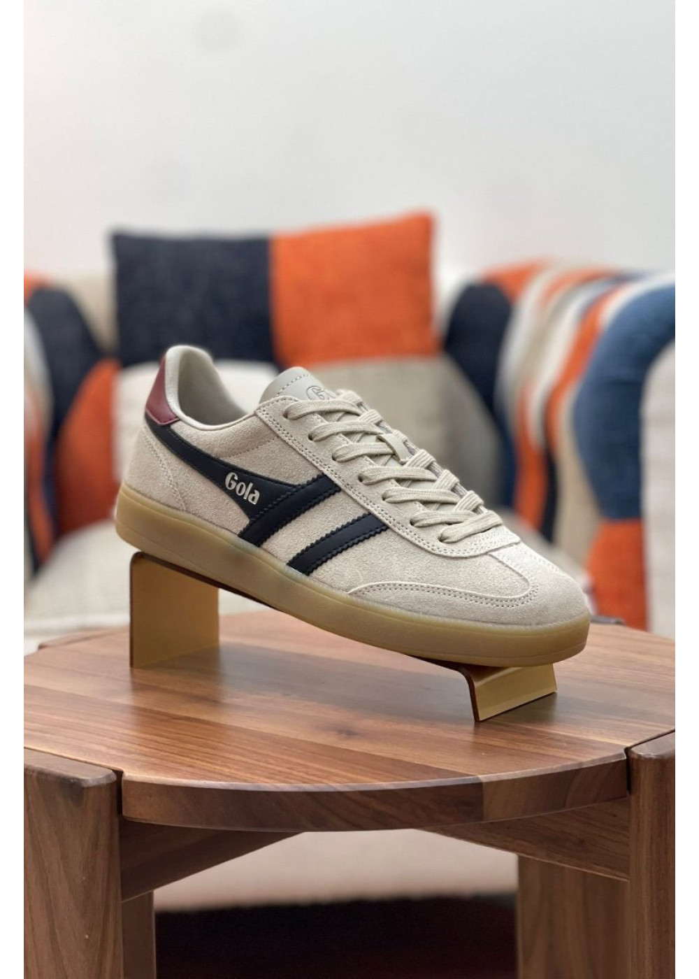 La Gola Viper recupera el estilo de las zapatillas de pista de los 70. En esta combinación Bone/Black/Red Ochre, mezcla tonos neutros con toques vibrantes para un look vintage auténtico y versátil.
