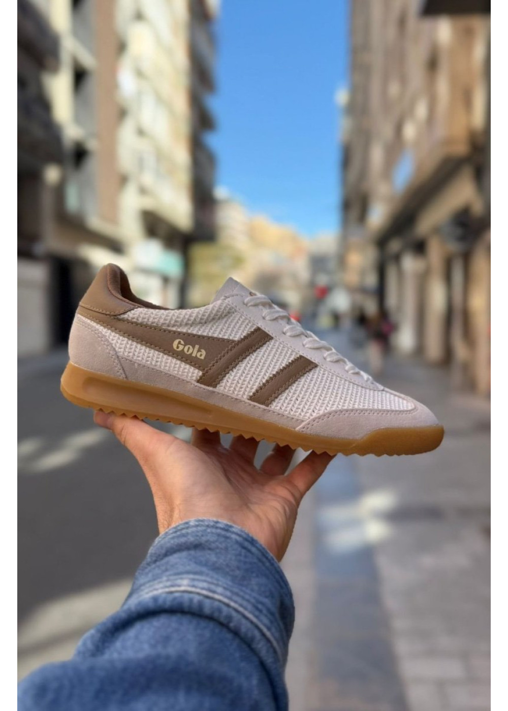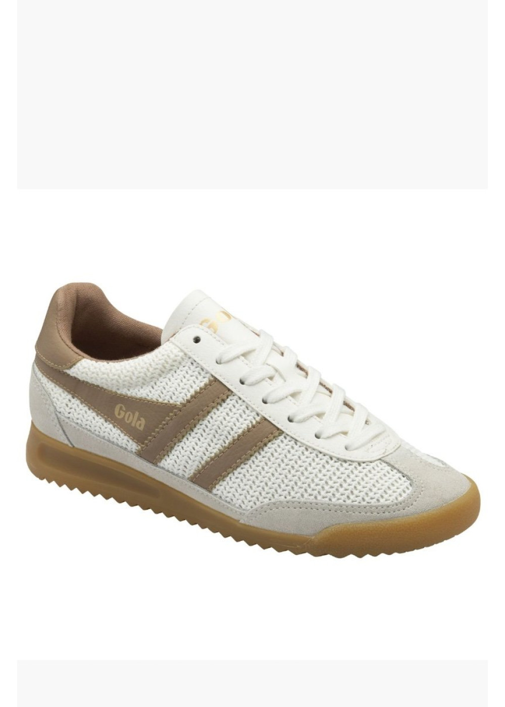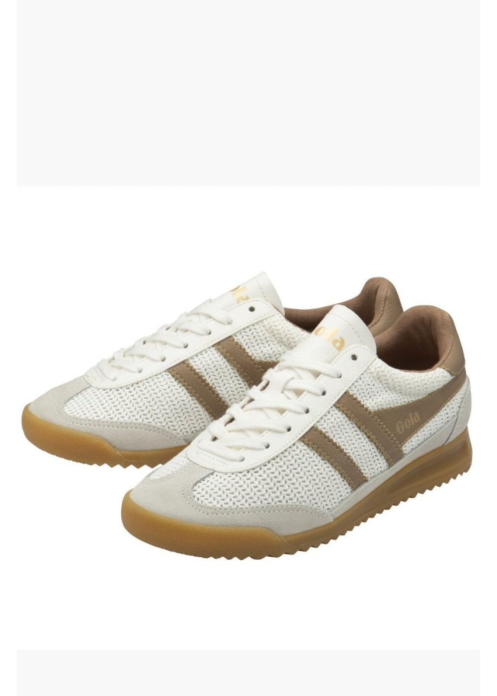 En esta edición en color Off-White con detalles en Light Caramel, la zapatilla combina la estética retro-deportiva con una sofisticación sutil. Su suela de goma "gum" con una ligera cuña no solo garantiza comodidad, sino que refuerza ese encanto old-school que define a Gola.